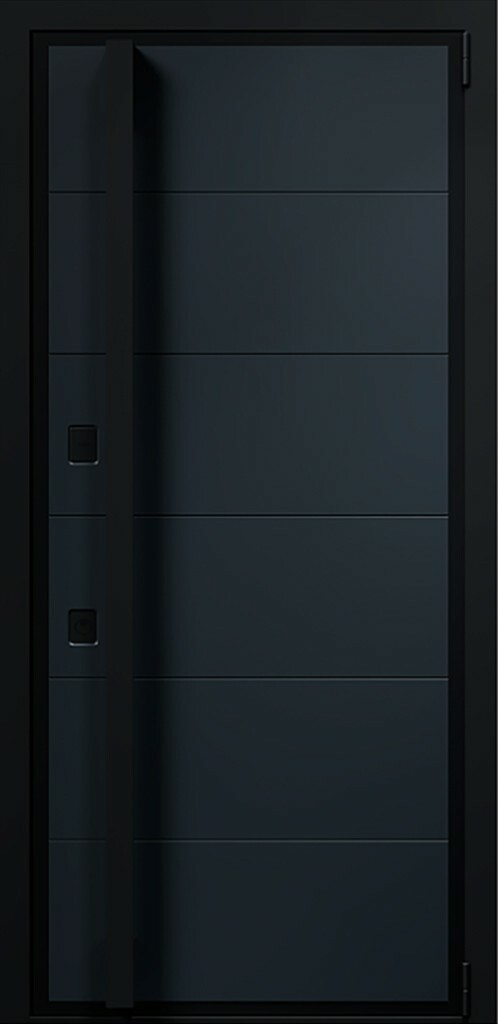 Уличная дверь с длинной ручкой во всю высоту полотна в современном стиле. Входная дверь с терморазрывом и термокабелем защищена от промерзания и образования наледи. Максимальная степень взломостойкости дополнена удобством электромеханического замка. Эмалевая отделка защищена металлическим уголком от сколов. Доступны нестандартные размеры и индивидуальные конструкции для широкого проема коттеджа и загородного дома.