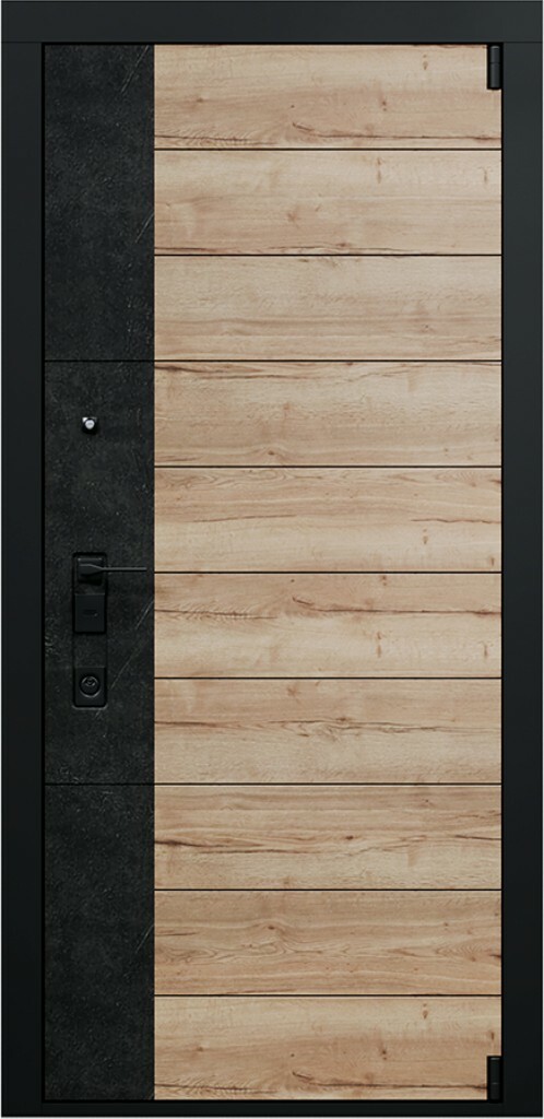 Входная дверь с максимальными параметрами тепло-шумоизоляции на самых надежных петлях Барк, усиленном и утепленном коробе с немецким уплотнителем Schlegel + магнитным контуром, итальянским двухсистемным замком Mottura максимального класса взломостойкости и итальянским цилиндром Cisa.